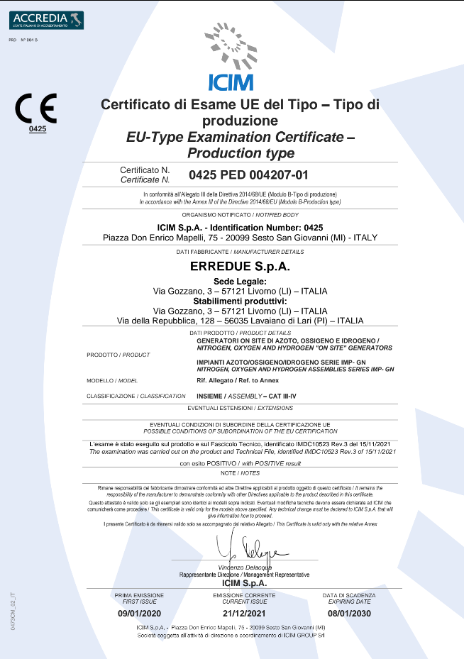 Home Certificazioni PED / ICIM 0425 IMPIANTI AZOTO/OSSIGENO/IDROGENO SERIE IMP- GN PED / ICIM 0425 IMPIANTI AZOTO/OSSIGENO/IDROGENO SERIE IMP- GN ,