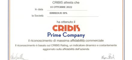 ErreDue certified by Cribis as “prime company” for the proven complete commercial reliability