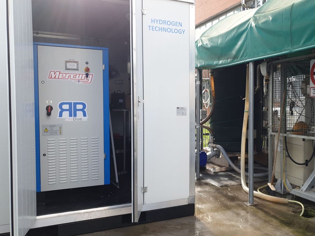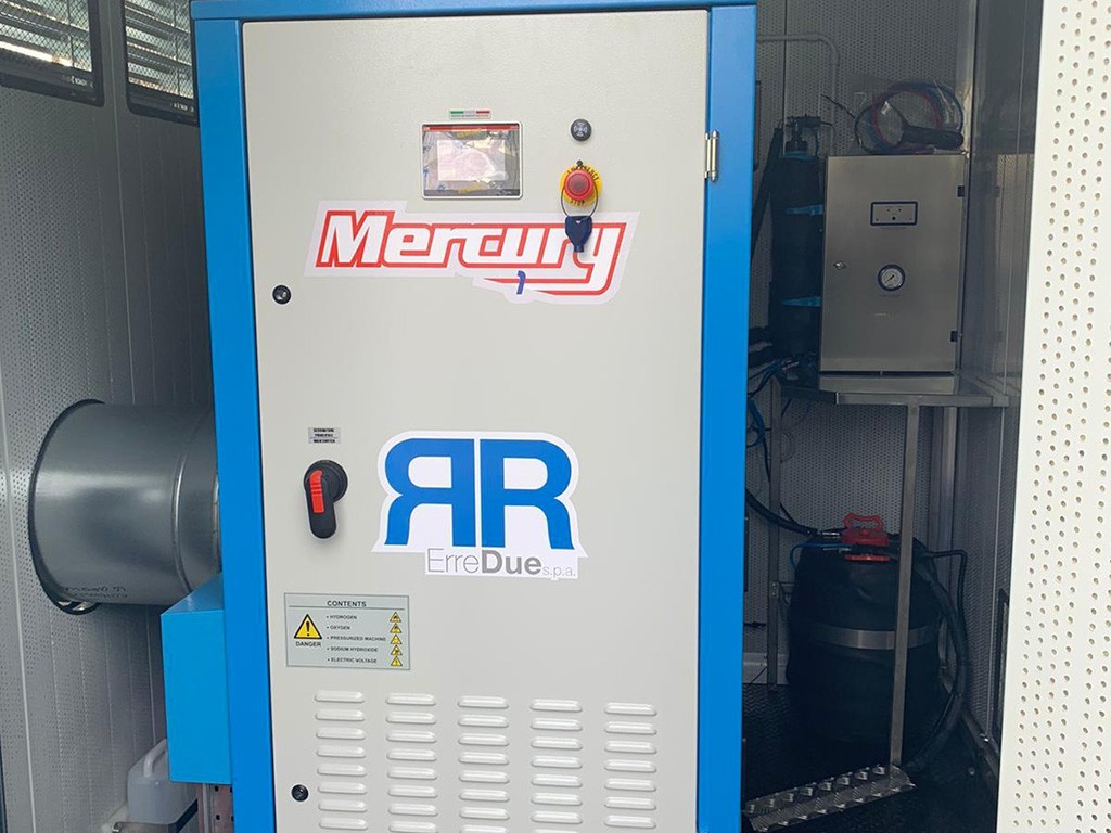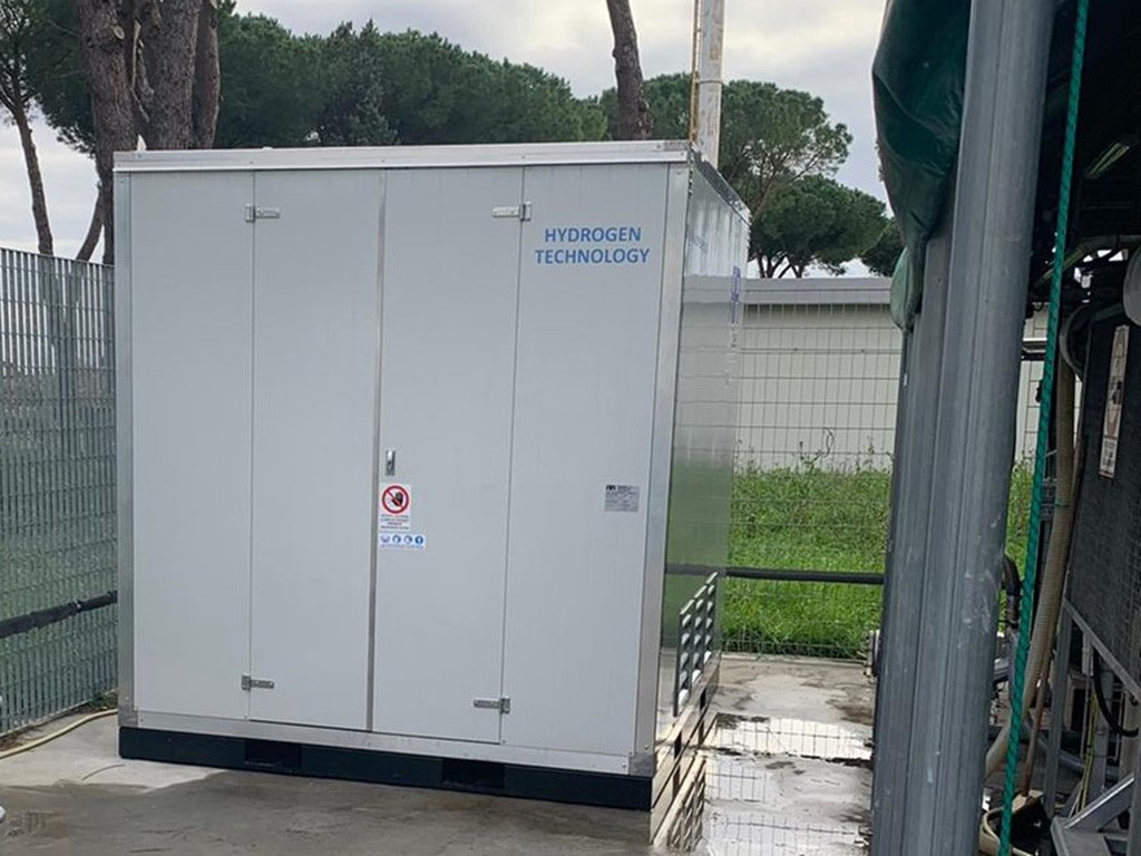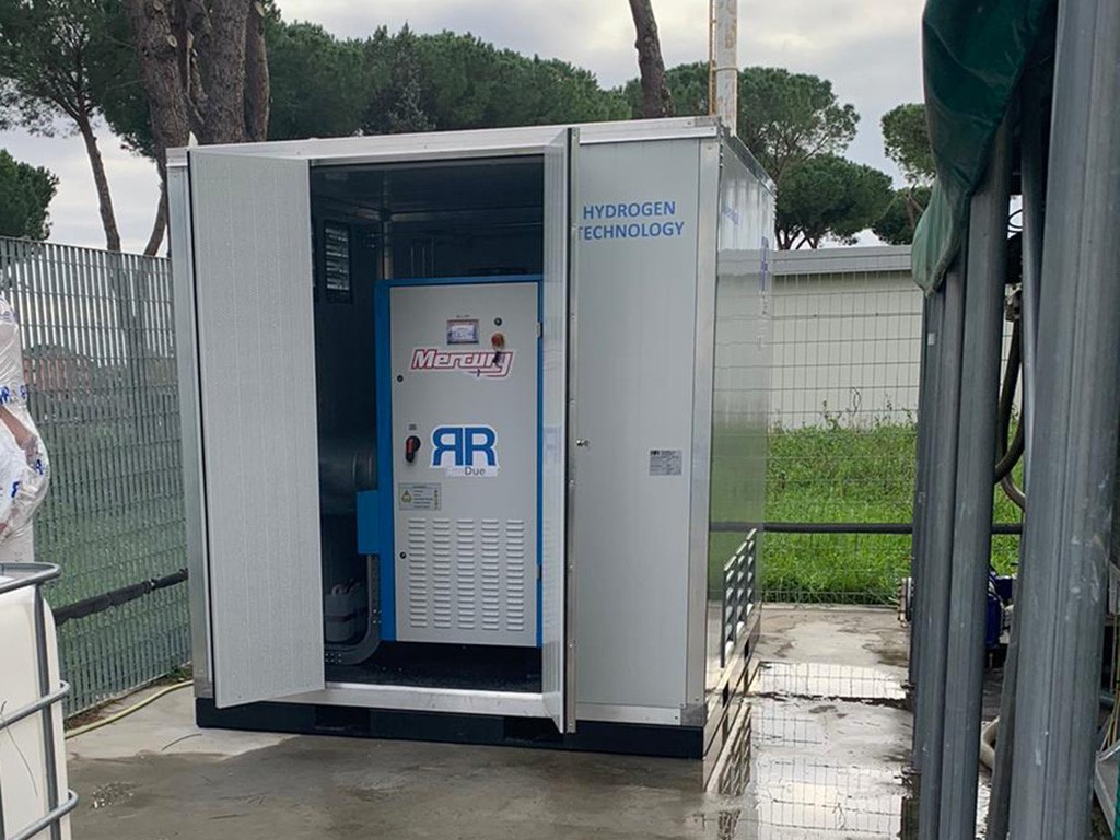 Installation of a “Mercury G1” hydrogen generator in a Plug&Play container at the Enea Research Center, for the study of optimization of biomethanation processes.
