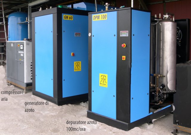 Sistema composto da un generatore di azoto dotato di depuratore esterno per la produzione di azoto ultrapuro e idrogeno.