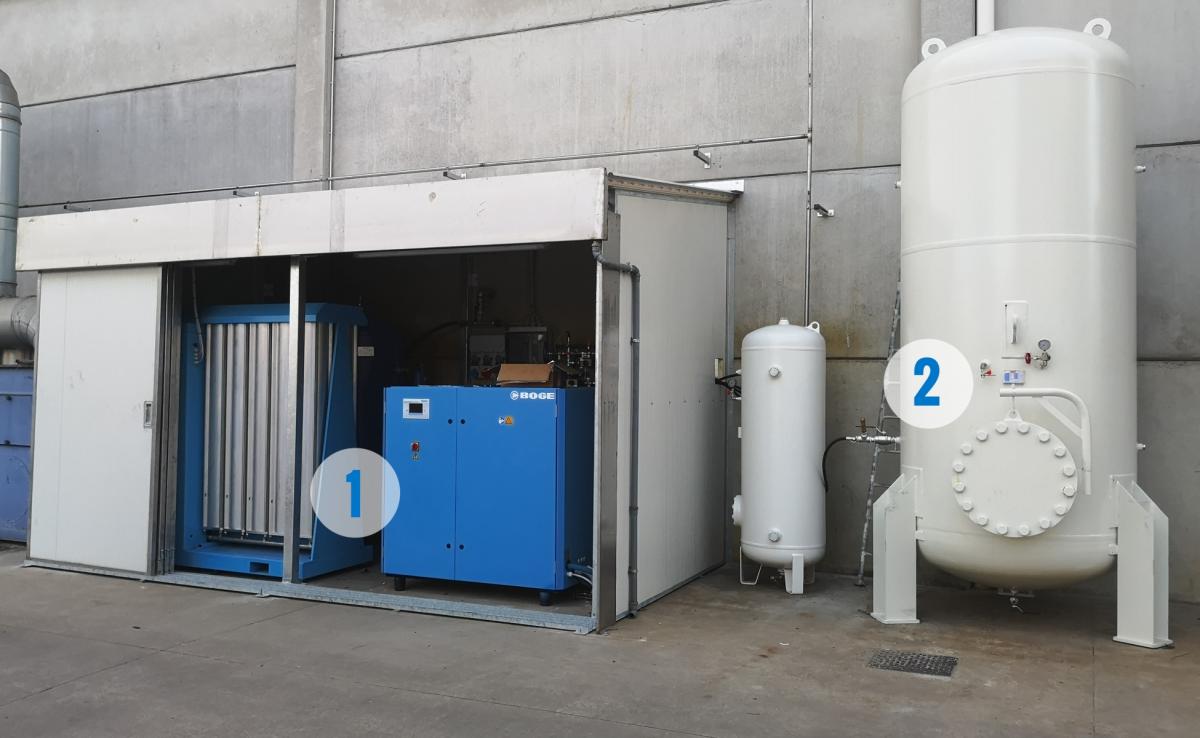 Impianto utilizzato per alimentare un laser 4.000 watt Messer più un taglio plasma in Provincia di Piacenza.
