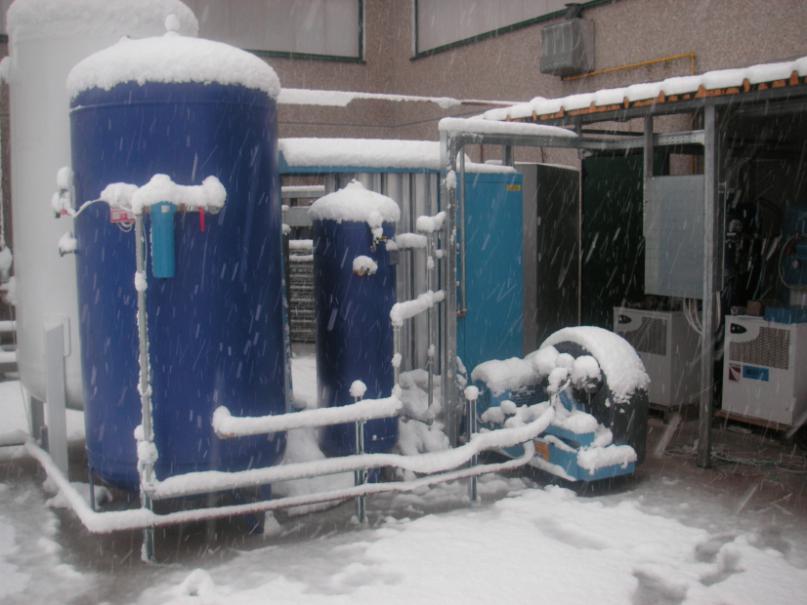 Generatore di azoto Venus GN30 utilizzato in abbinamento a compressori e serbatoi di stoccaggio per il taglio laser.