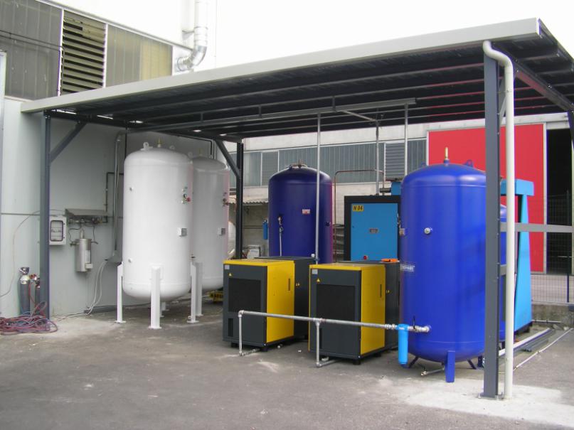 Generatore di azoto Venus GN60 utilizzato in abbinamento a compressori e serbatoi di stoccaggio per il taglio laser.