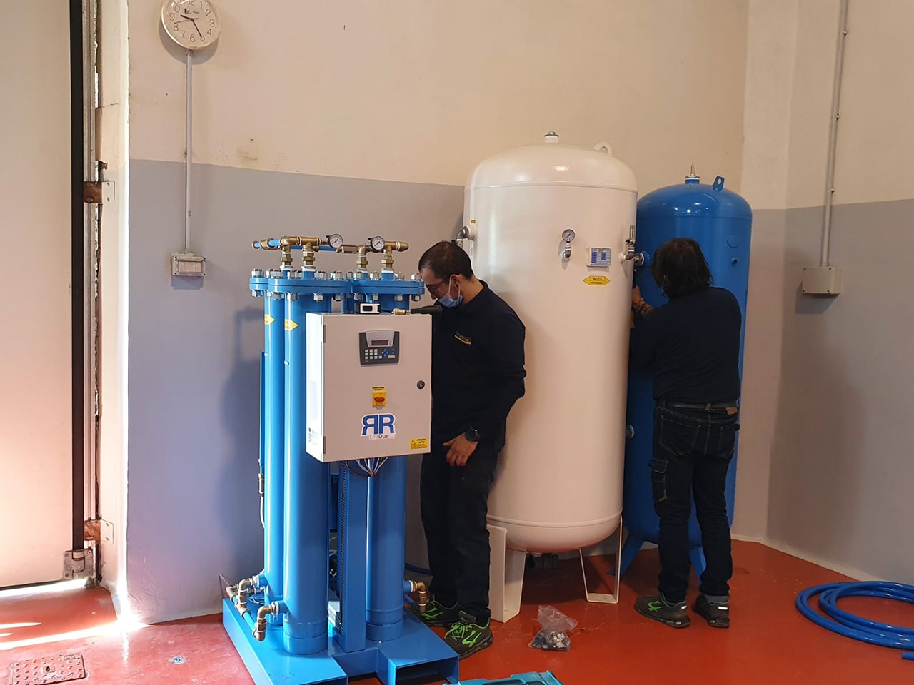 Generatore di azoto per imbottigliamento del vino presso cantina in provincia di Alessandria.