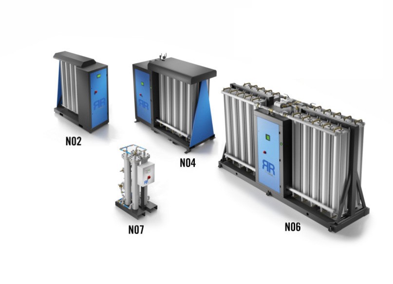 I generatori Venus producono azoto con purezza fino al 99,9995% e con flussi fino a centinaia di metri cubi orari.
